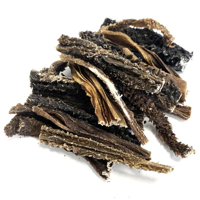 Lamb Tripe is an entirely natural dog treat product, made from dried pieces of the inner lining from a sheep’s stomach. Many people feed raw untreated tripe to their dogs, but as this presents difficulties for many people in terms of storage and preparation our tripe has been air-dried from raw. This means the tripe will last much longer at ambient temperatures (i.e. it does not need to be kept in the fridge) but still has its natural goodness and nutrients locked in. Please be aware, as this is a 100% natural product there will likely be variation in the size and thickness of each chew, and though it has been treated the tripe will have a strong smell that some people find off-putting.